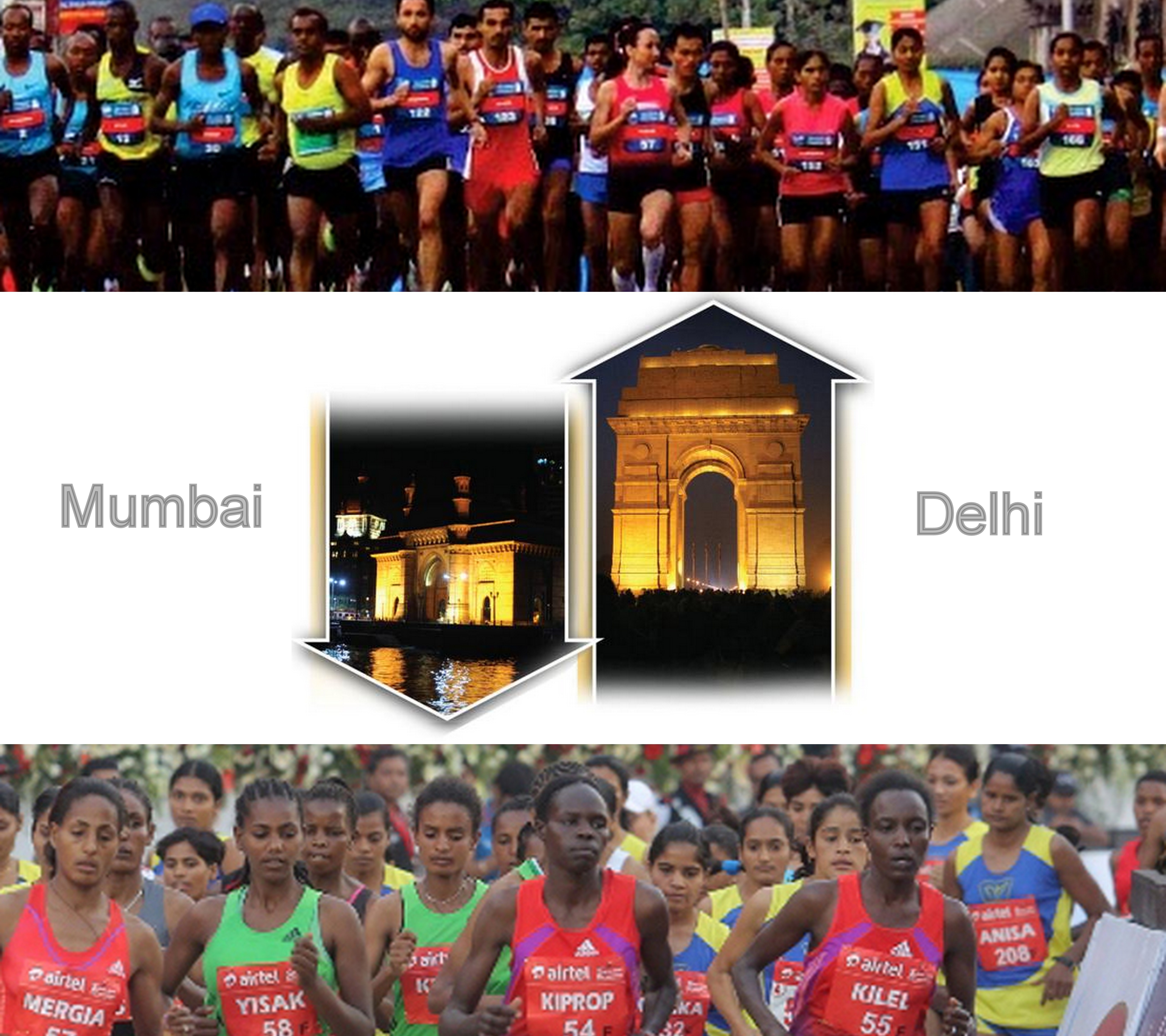 The race route for Delhi is ‘pretty much flat’ whereas Mumbai has 2 noticeable inclines (the Bandra-Worli Sea Link and Peddar Road). In both cities, the races are held on motorable roads.