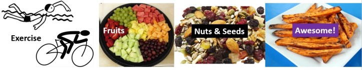 Sunny the Swimmer has cycled from school to his daily 2-hour swim. He has then cycled back home and along with a large platter of fruit, nuts and seeds, his father has prepared a plate of fries. These are sweet potatoes bought at the local organic market, and have been grilled after being brushed with a combination of olive and mustard oil to just the level of crispness on the outside that Sunny enjoys. There’s so much value in that meal. Awesome!