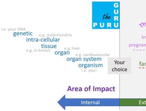 To provide structure to your thoughts, I came up with the following framework. From the point that you make a decision to drink alcohol, there is an impact on you – zooming in inside you, right down to your DNA. And widening out, zooming out, your choice to drink, or not, has an impact on the world.