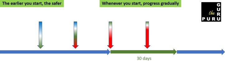 Commencement after some days of the fasting month have passed – will mean that you will have got accustomed to the new regime minus the running. Depending on when you start running relative to the start of the fasting month, you will have to interpolate between the two paragraphs above.