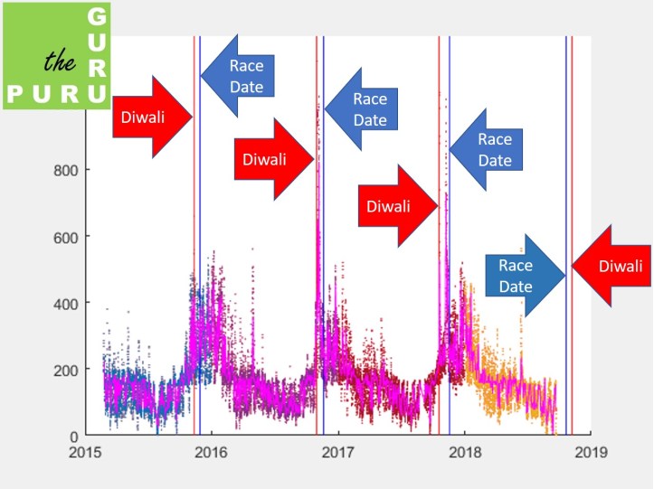 With the media scares around the ADHM-2016 and ADHM-2017, the ensuing reactions from the title sponsors and race organizers, and the dip in participation (strong in 2016, limited in 2017), it made sense to me that I think about how to tackle this tension between weather and pollution.