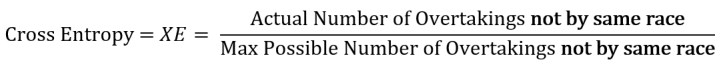 It is similar to Race Entropy in that it is a measure of the number of overtakings that occur within a race. However, now the focus is only on an overtaking of a runner by someone in another race. So, only a runner from race A being overtaken by a runner from race B. We can define it as: