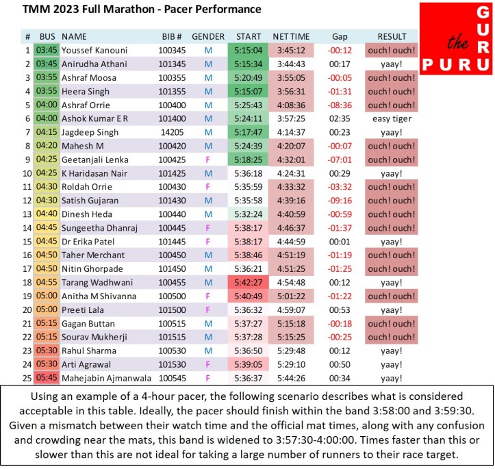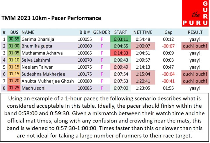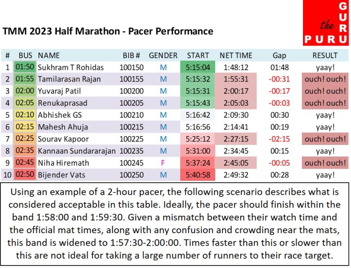 2. Hi – Why are you being so hard on pacers – who are ultimately providing a free service? Besides most dedicate runners who are focused on specific race times as their target use advanced sports watches which offer virtual racing partners. I ran with one such in TMM and achieved my target. Perhaps the whole idea of a “bus” is past its utility?