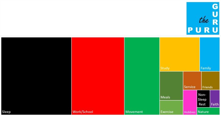 The various components can easily be overlapped with care. You can make your Service to Others to also include some Movement. You can Study with your Family. You can Exercise with Friends. Your Hobbies might involve a Connection with Nature.