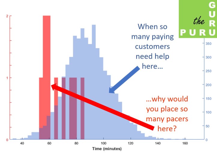 Finishing almost 5 minutes earlier than the target time (“easy tiger/tigress!”) is also poor pacing because it reduces the number of successful participants that day whose maximum abilities were close to the target time.
